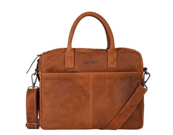Deze stijlvolle laptoptas van DSTRCT is gemaakt van mooi stevig leer, en wordt geleverd met een afneembare en verstelbare schouderband. Het hoofdvak sluit met rits, binnenin de tas zit een ritsvak, een gewatteerd laptopvak voor een 15" inch laptop, een vak voor een 7 inch tablet en 2 pennenlussen. Daarnaast hebben de voor- en achterzijde van de tas ook nog een groot ritsvak om allerlei spulletjes op te bergen. Een mooie, praktische en stevige laptoptas van mooi materiaal en veel opbergmogelijkheden.| Materiaal |