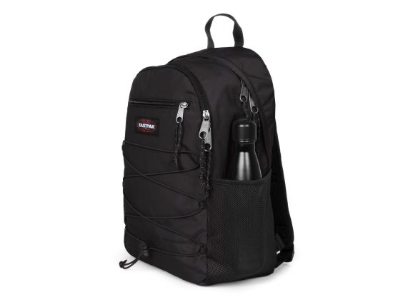 Practical Eastpak backpack with laptop compartment for 13" laptop and bottle holder. Comfortable to carry with padded back panel and adjustable mesh shoulder straps. This backpack closes with a zip but also has an elastic cord to attach extra stuff. Great to use as an Eastpak school bag.|