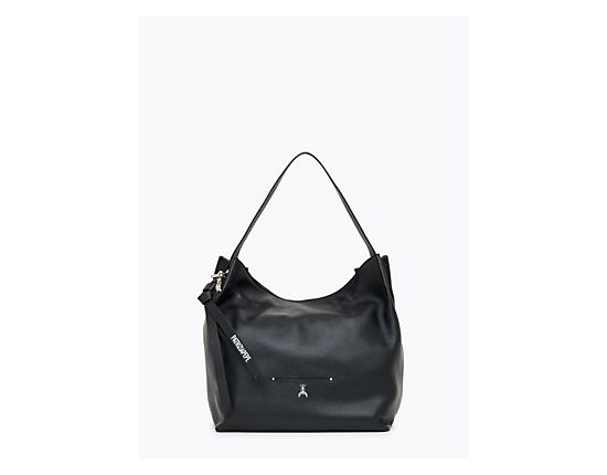 This medium-sizedhobo shoulder bag from Patrizia Pepe is made of sturdy leather. It closes with a zipper, has an adjustable shoulder strap with buckle and is made clear by the metal Patrizia Pepe logo.