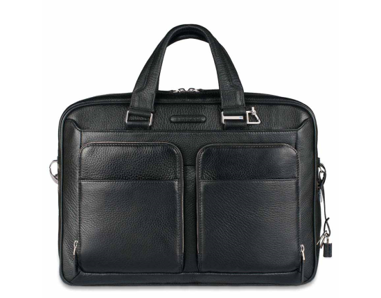 Piquadro Black Square black leather laptop bag 15"