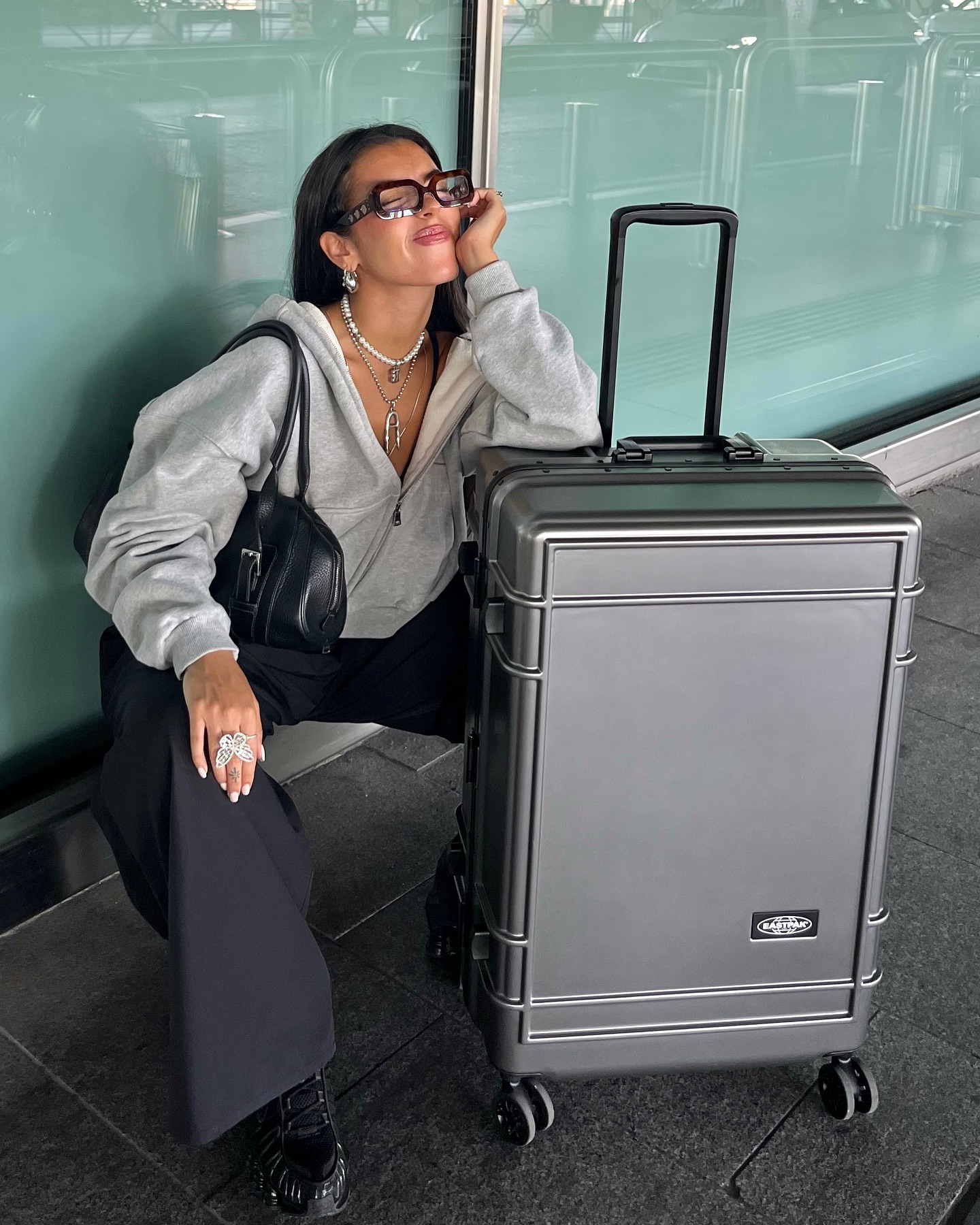 Die Eastpak Tranverz M ist eine mittelgroße graue Reisetasche und verfügt über 2 Rollen, einen Teleskopgriff und zwei Tragegriffe, so dass diese Reisetasche überall hin mitgenommen werden kann. Die Tasche hat zwei Innenfächer mit Reißverschluss und auf der Vorderseite ist auch noch ein Reißverschlussfach. Dank dem TSA-Schloss werden Ihre Sachen sicher aufbewahrt. Mit den Kompressionsbändern machen Sie Ihr Gepäck so kompakt wie möglich und zu Hause kann die Tasche abgeflacht werden und nimmt wenig Platz in Anspruch.